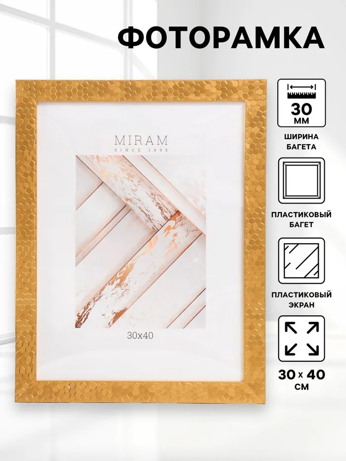Фоторамка пластик "МИРАМ" 30х40 см, 651618 золото (Пластиковый экран)