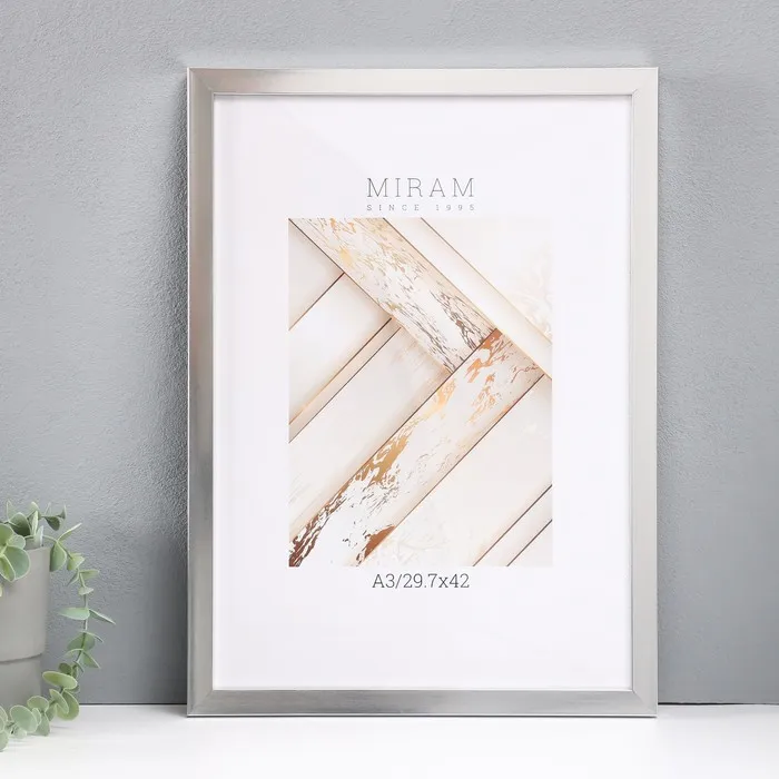 Фоторамка пластик "МИРАМ" 29,7х42 см, (A3) 641822, серебро(пластиковый экран)