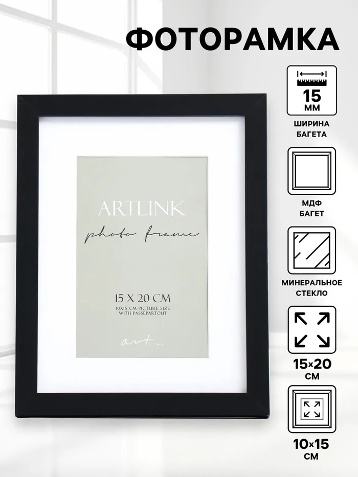 Фоторамка МДФ "Ellis" 15x20 см, с паспарту, чёрный