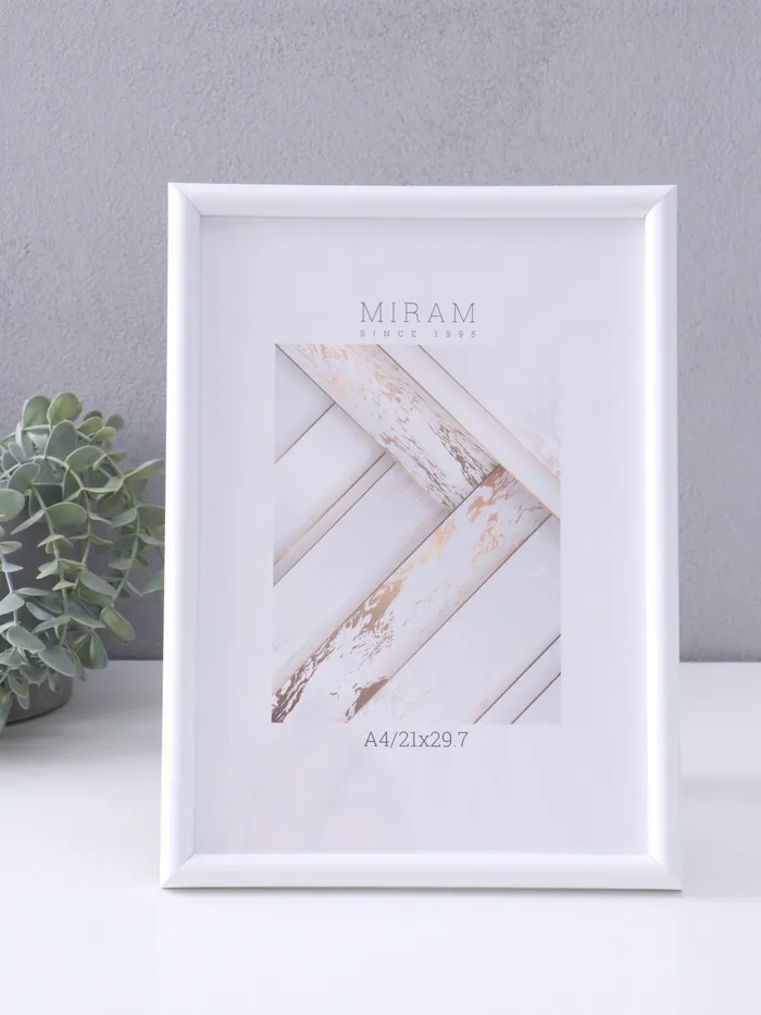 Фоторамка пластик "МИРАМ" 21х29,7 см, (A4) белый (пластиковый экран)