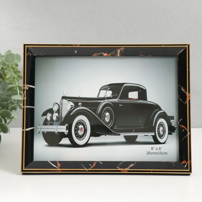 Фоторамка пластик 15х20 см "Черный мрамор с золотой рамкой" 17х22 см
