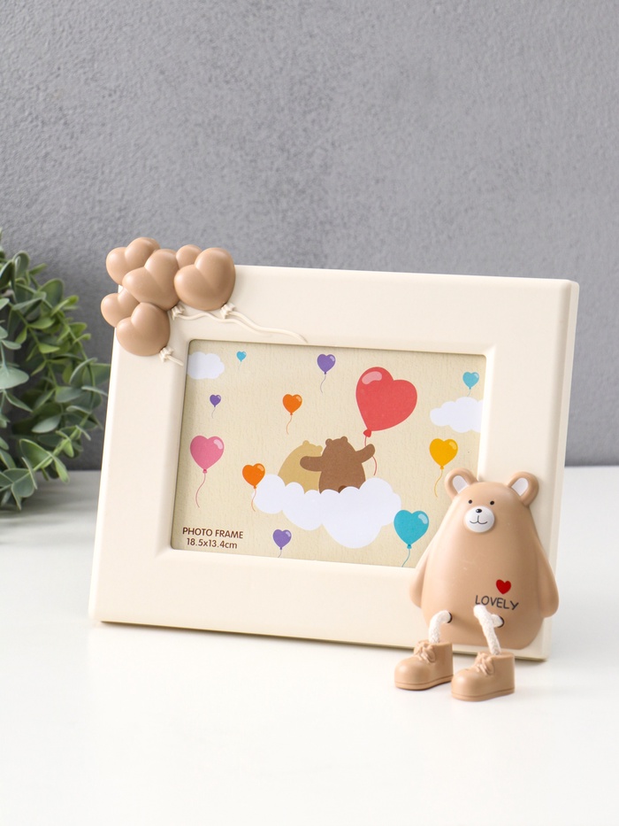 Фоторамка для фотографии 12×17 см «Мишка с сердечками», пластик, бежевая, 24×19.5 см — Характеристики