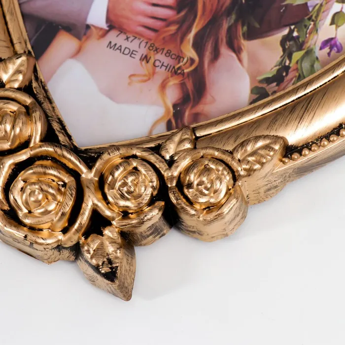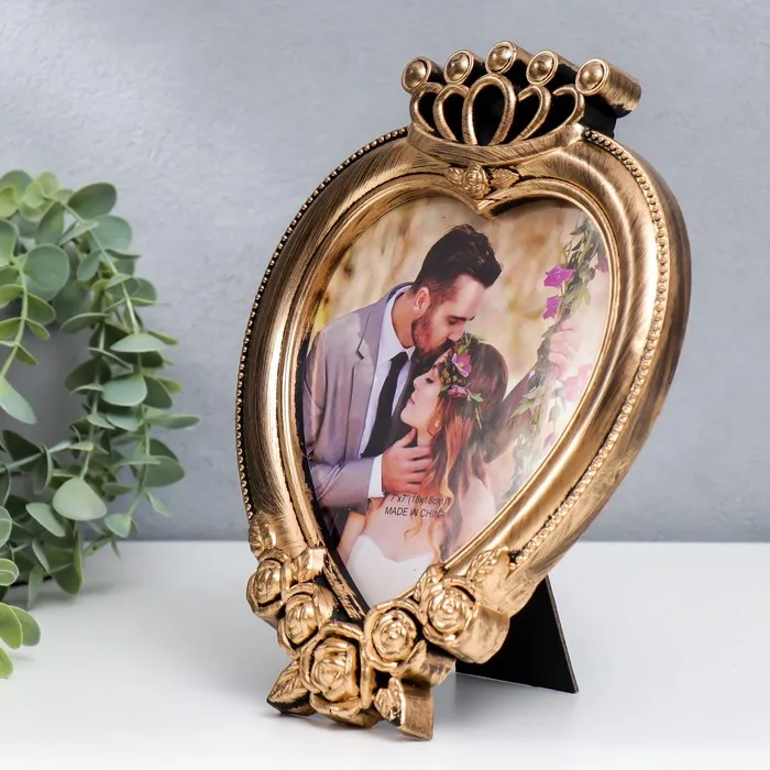 Фоторамка для фотографии 18×18 см «Сердце с розами и короной», пластик, т. золото, 25×20 см — Характеристики