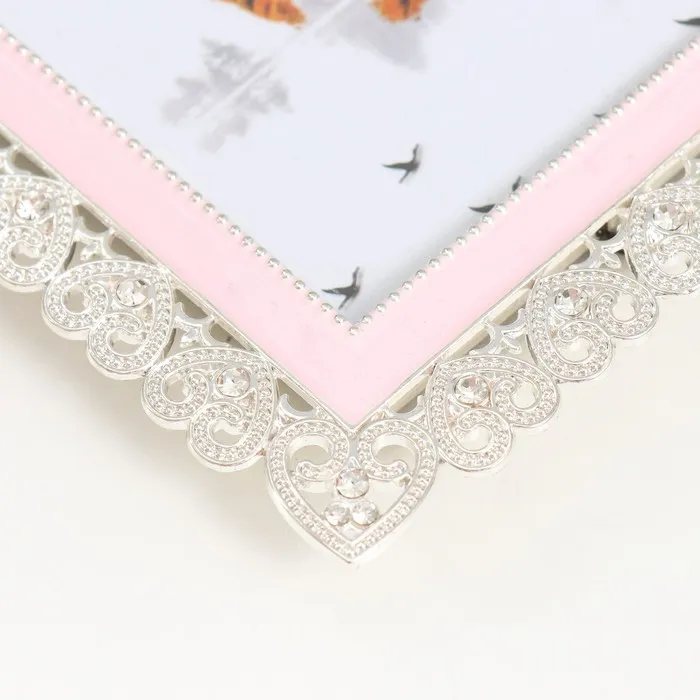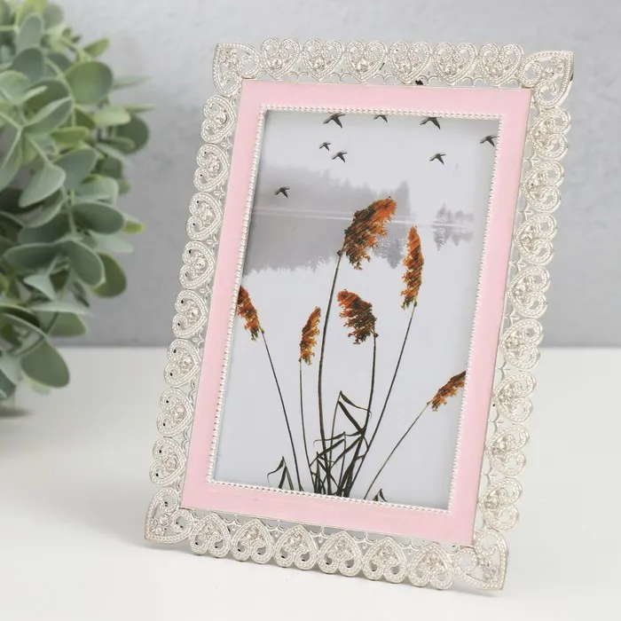Фоторамка для фотографии 9×13 см «Сердечки-завитки», металл, стекло, стразы, серебристо-розовый, 12.3×16.3 см — Характеристики