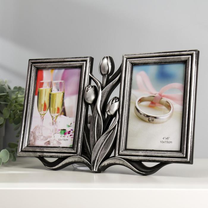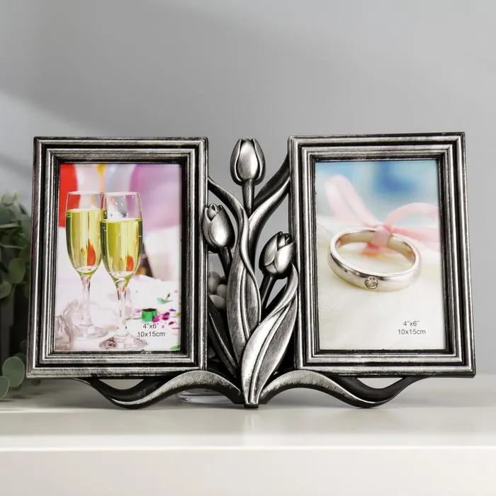Фоторамка-коллаж на 2 фото 10×15 см «Тюльпаны», т. серебро, 20×31 см — Характеристики