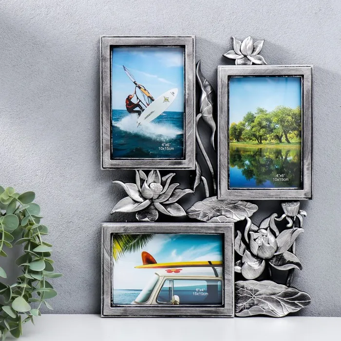 Фоторамка-коллаж на 3 фото 10×15 см «Лотосы», т. Серебро, 36×27 см — Характеристики