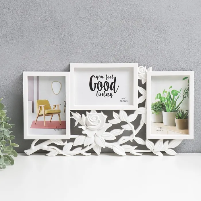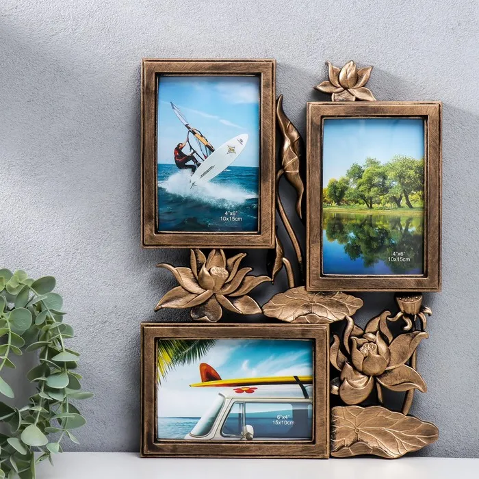 Фоторамка-коллаж на 3 фото 10×15 см «Лотосы», т. Золото, 36×27 см — Характеристики
