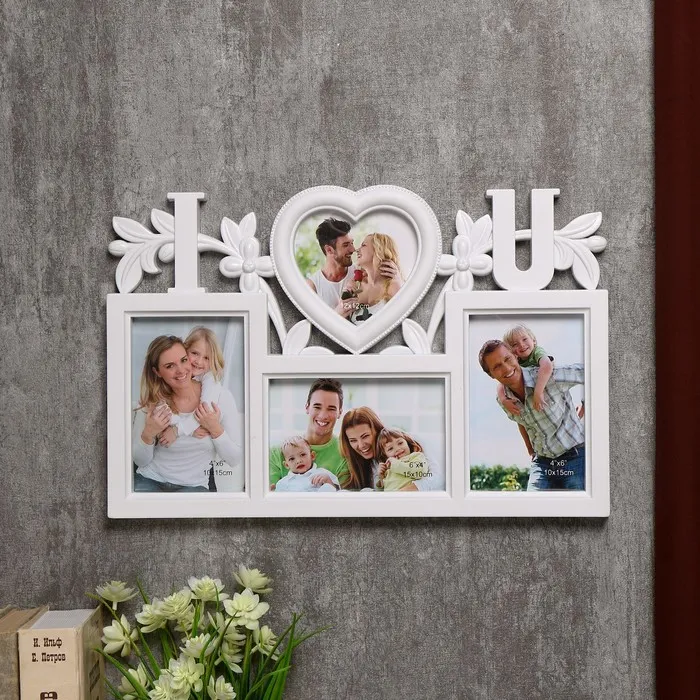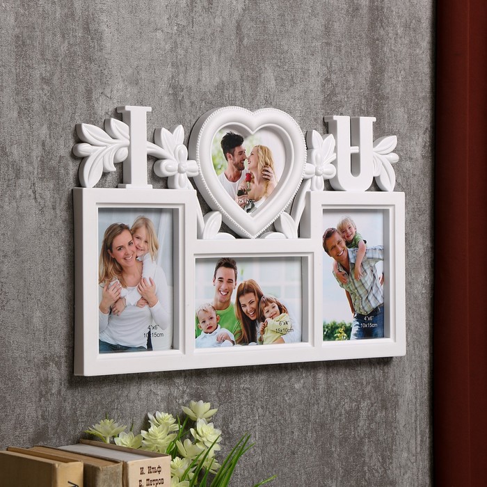 Фоторамка-коллаж на 4 фото 10×10, 10×15 см «Я люблю тебя», пластик, мультирамка, белая, 26.5×40×2.5 см — Характеристики