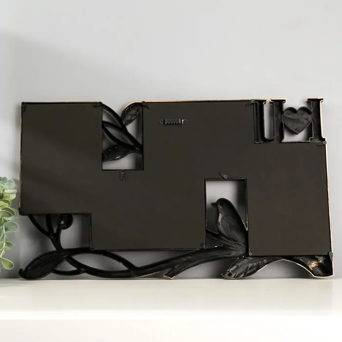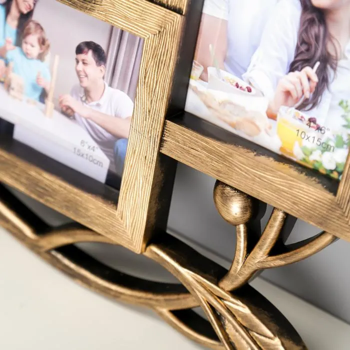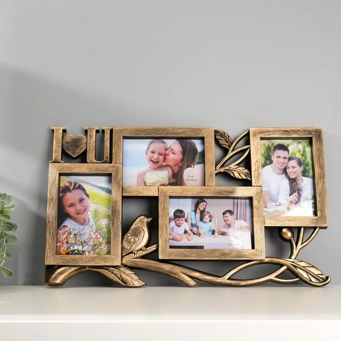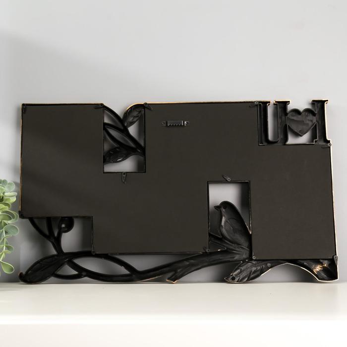 Фоторамка-коллаж на 4 фото 10×15 см «Птица на ветке», пластик, мультирамка, т. золото, 28×47 см — Характеристики