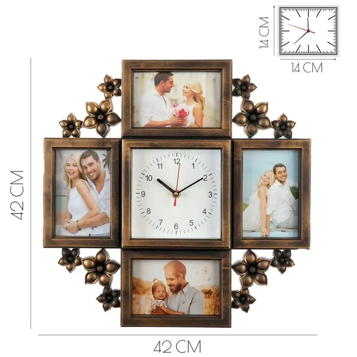 Фоторамка с часами - стильный и уникальный аксессуар, который позволит создать настоящий фотоколлаж для вашей семьи. Благодаря размещению рамок для фото в виде коллажной композиции, вы сможете сохранить самые яркие моменты вашей жизни в красивой и оригинальной форме.