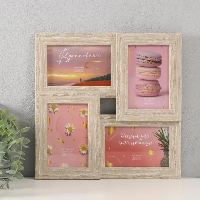 Фоторамка коллаж выполнена в бронзовом цвете. Привлекает внимание к самим фотографиям, создавая эффектный контраст и придающий вашим семейным снимкам особую гармонию и красоту. Станет незаменимым аксессуаром в любом доме, комнате и даже офисе.