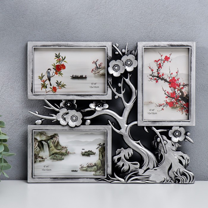 Фоторамка - коллаж на 4 фото 10×15 см «Серый грифель», пластик, 32×31.8 см — Характеристики