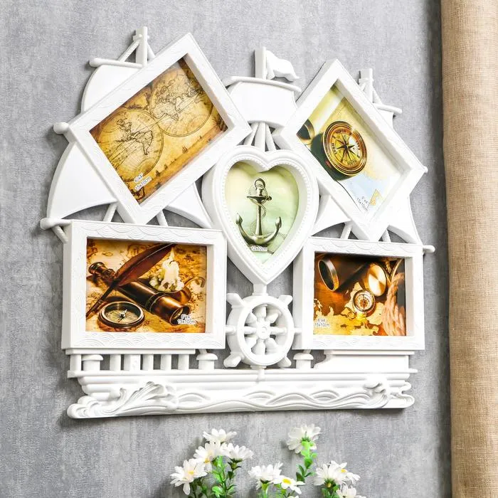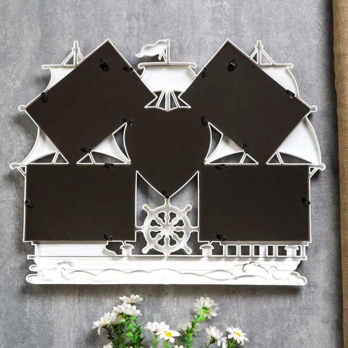 Фоторамка-коллаж на 5 фото 10×15, 12×12 см «Корабль», пластик, мультирамка, белая, 38×48 см — Характеристики