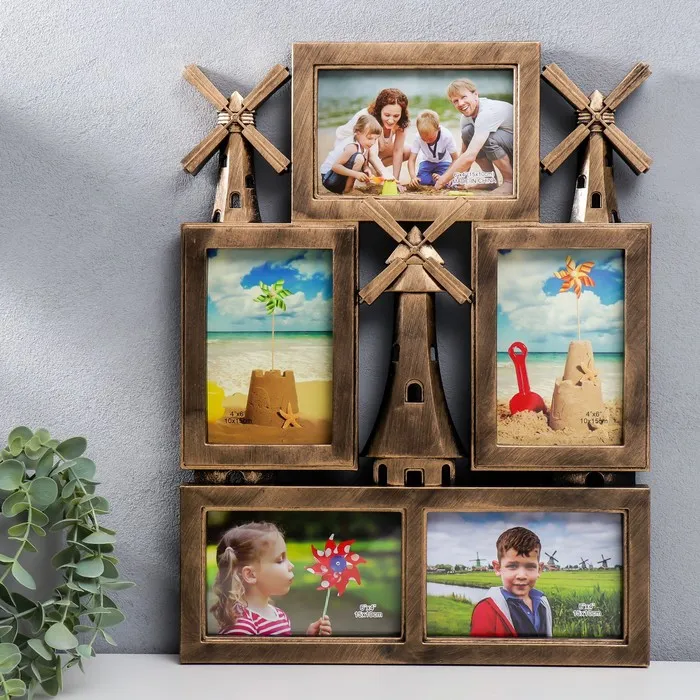Фоторамка-коллаж на 5 фото 10×15 см «Мельницы», т. Золото, 45×34 см — Характеристики