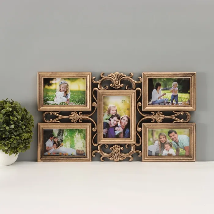 Фоторамка-коллаж на 5 фото 10×15 см «Узорная», пластик, т. золото, 30.5×53 см — Характеристики