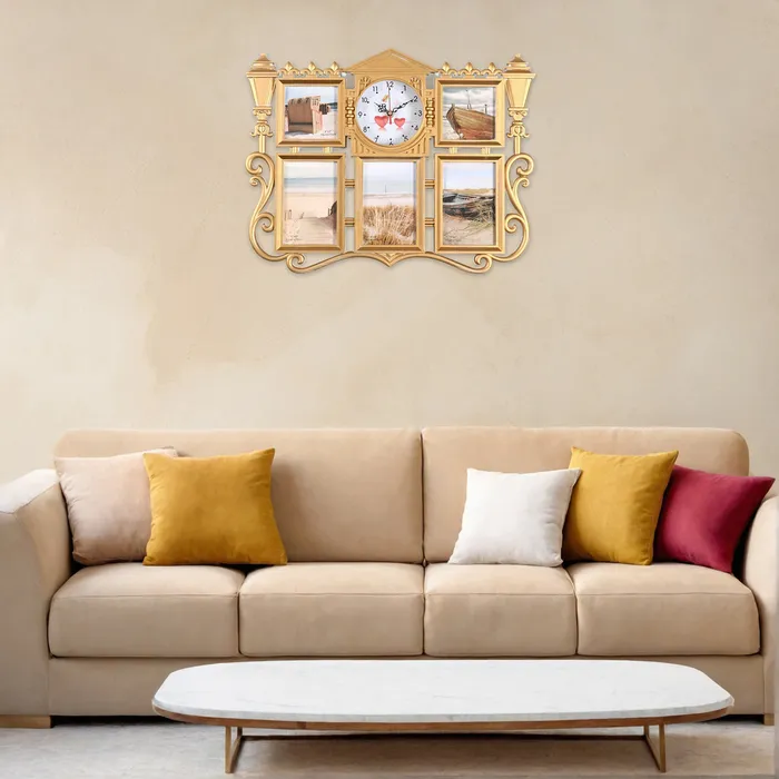 Настенные часы с фоторамками - оригинальный подарок, который никого не оставит равнодушным. Эти часы настоящая находка для тех, кто ценит качество и неповторимый дизайн. Настенные часы - это не только функциональный предмет, но и настоящий декоративный аксессуар, они разнообразят интерьер любой спальни или гостиной, подчеркнут стиль и гармонию вашего дома. Вместе с часами идут 5 рамок для фотографий, сделайте подборку из лучших и любимых фотографий, которые будут напоминать вам о каком-то приятном моменте вашей жизни.