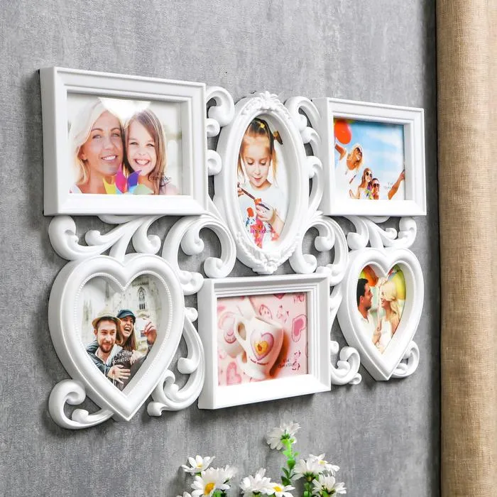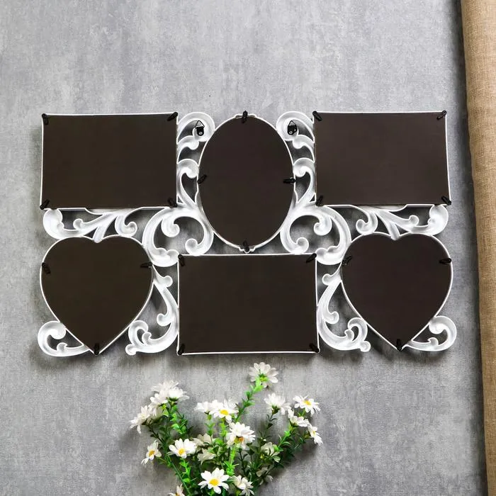 Фоторамка-коллаж на 6 фото 10×15, 12×12 см «Завитки», пластик, мультирамка, белая, 31.5×53 см — Характеристики