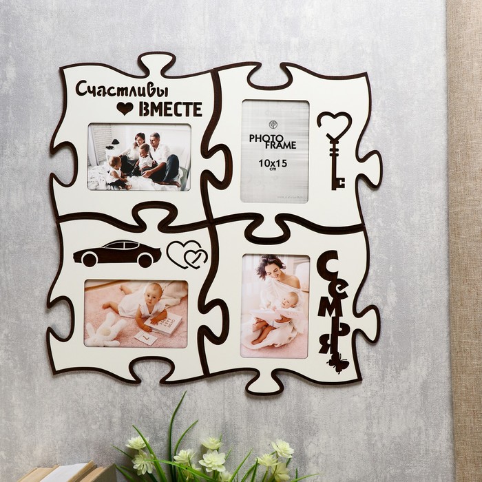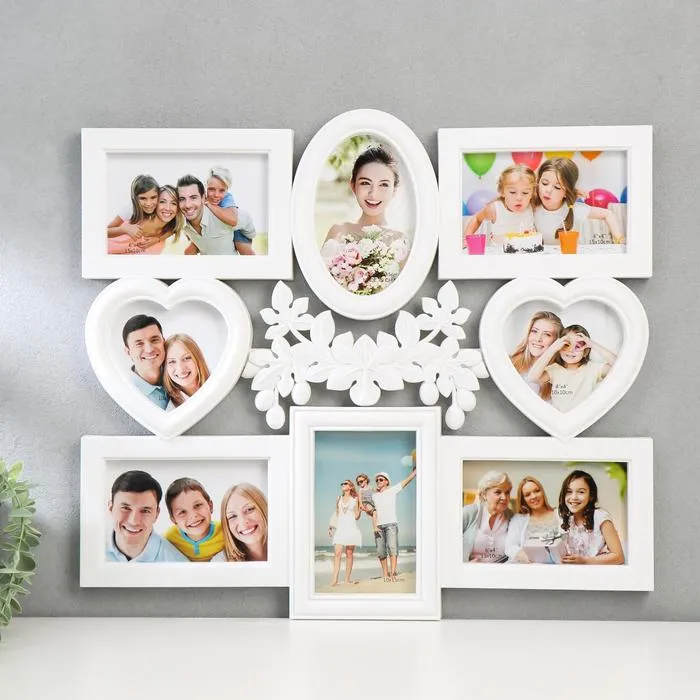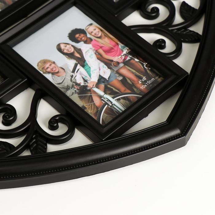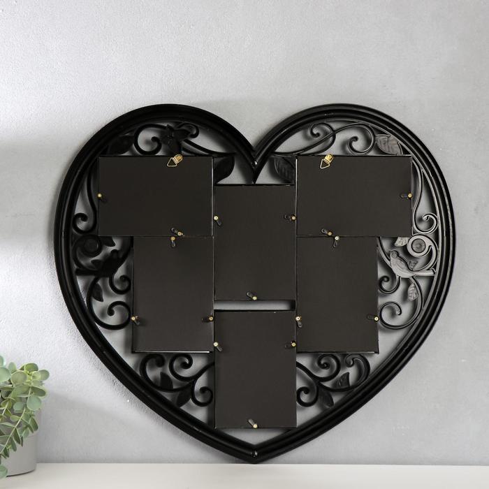 Миленькая фоторамка - коллаж на 6 фото 10×15 см «Сердце ажурное», пластик, чёрная, 56×51 см, которая обязательно станет актуальным презентом на 14 февраля, годовщину и другую значимую для вас дату. Она станет изящным обрамлением сразу нескольких фотографий и в то же время прелестным аксессуаром. Представьте, как приятно будет получить такую фоторамку вместе с совместными фотографиями в подарок от любимого человека. Романтика…