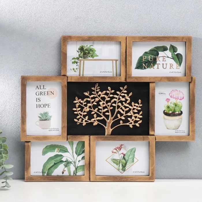 Фоторамка-коллаж на 6 фото 10×15 см «Золотое дерево», т. золото, 38×45 см — Характеристики
