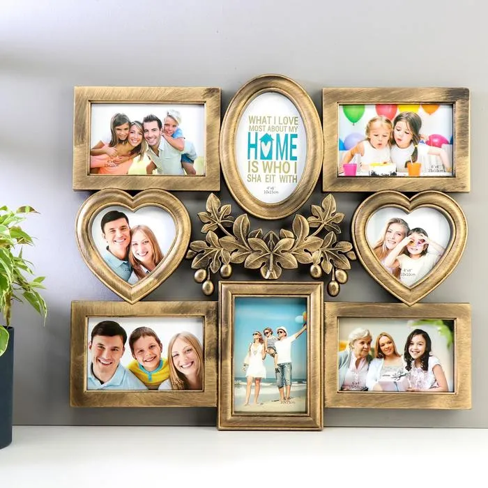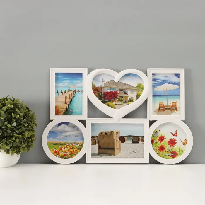 Создавайте тематические серии из фото и периодически их меняйте. Фоторамка-коллаж на 6 фото 13×13 см 10×15 см 13×18 см «Семейная», белая, 46.5×29.5 см — отличная возможность не ограничиваться вставкой одной фотографии, а одновременно разместить несколько дорогих сердцу снимков.