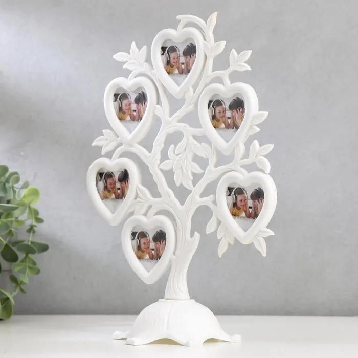 Фоторамка-коллаж на 6 фото 4.5×3 см «Дерево с сердцами», пластик, мультирамка, белая, 26.5×19.5×11 см — Характеристики