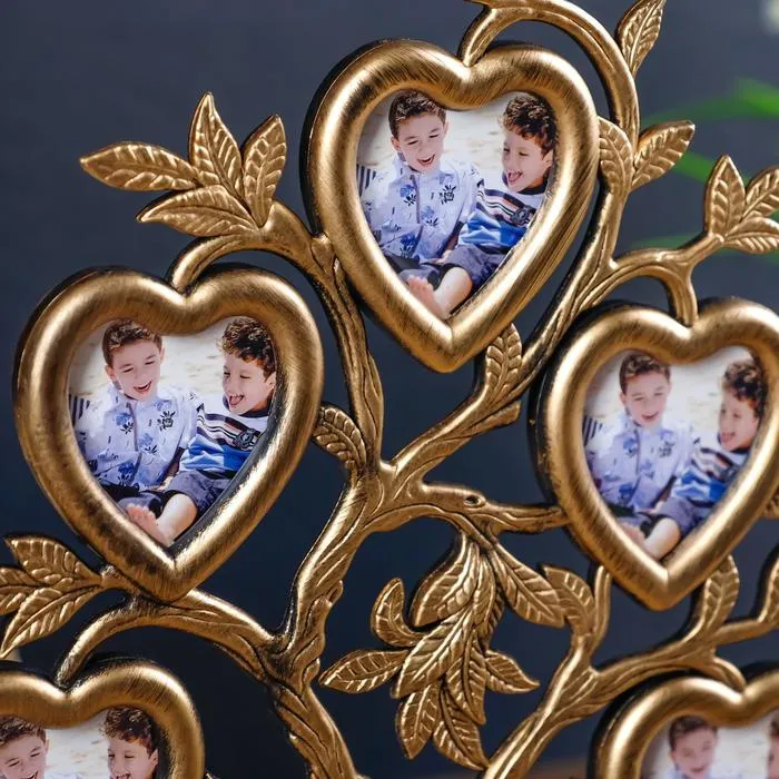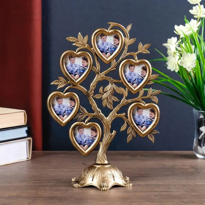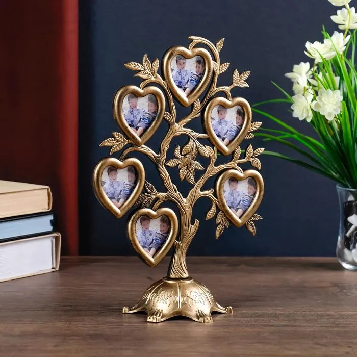 Фоторамка-коллаж на 6 фото 4.5×3 см «Дерево с сердцами», пластик, мультирамка, т. золото, 26.5×19.5×11 см — Характеристики
