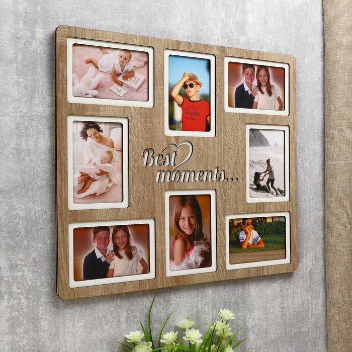 Фоторамка-коллаж на 8 фото 10×15 см Best moments, (пластиковый экран), беж — Характеристики
