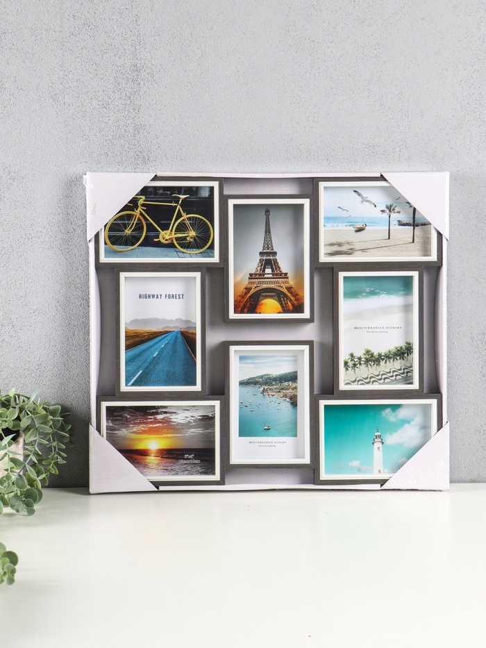 Фоторамка - коллаж на 8 фото 10×15 см «День и ночь», МДФ, стекло, 40.5×45×2.2 см — Характеристики