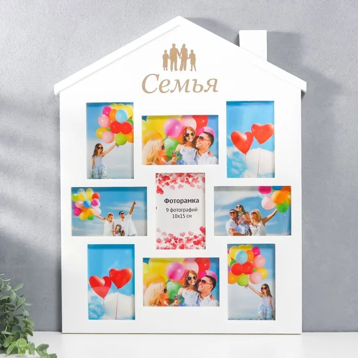 Фоторамка-коллаж на 8 фото 10×15 см «Наша семья», (пластиковый экран), беж — Характеристики