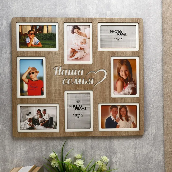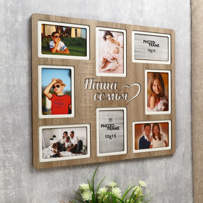 Фоторамка - коллаж на 8 фото 10×15 см «Наша семья», (пластиковый экран), светлая — Характеристики
