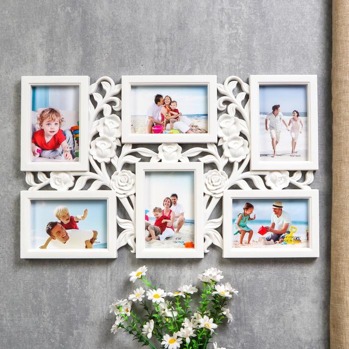 Фоторамка-коллаж на 6 фото 10×15 см «Куст роз», белая, 35.5×56.5×2 см