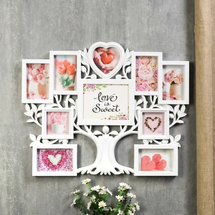 Фоторамка-коллаж на 6 фото 10×15 см, 13×13 см, 10×10 см «Семейное древо», пластик, мультирамка, белая, 56×44.5 см