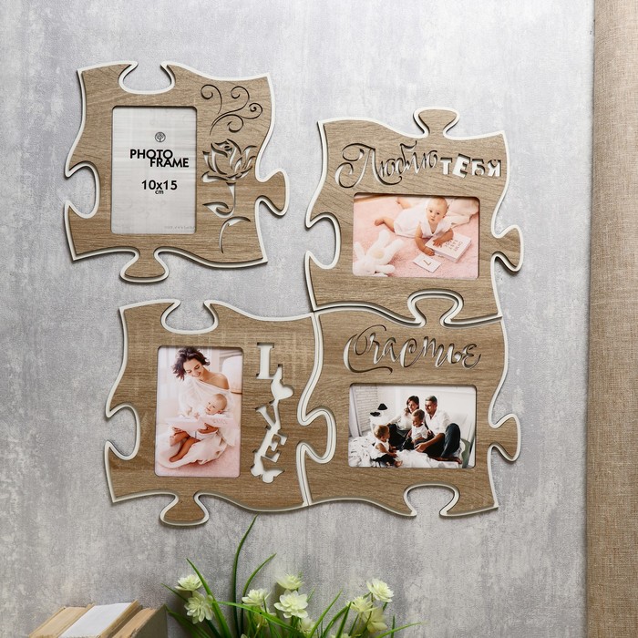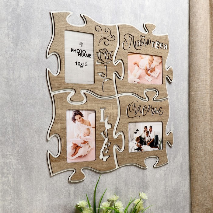 Фоторамка - коллаж пазл из 4 фрагментов 25×25 см «Люблю тебя», ХДФ — Характеристики