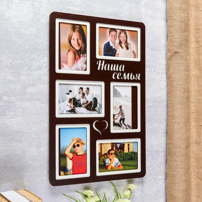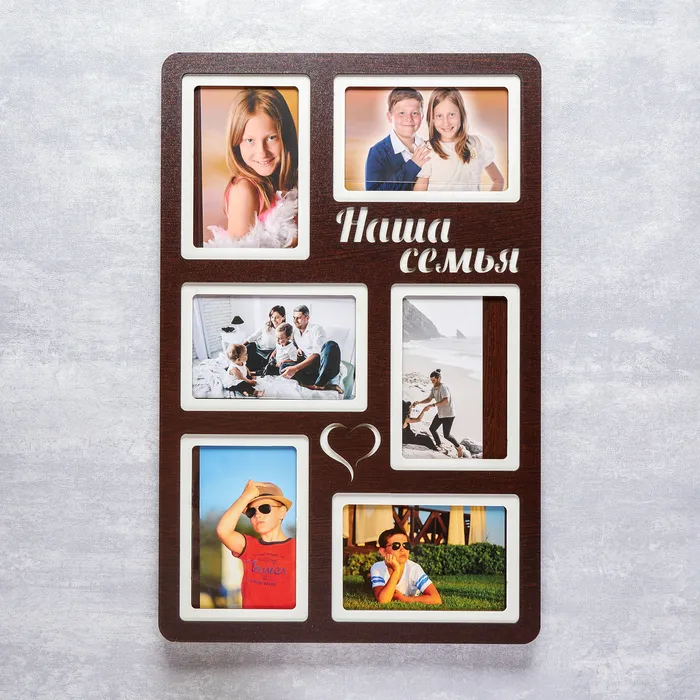 Фоторамка ЛХДФ "Наша семья" на 6 фото 10x15см. Размер изделия 33x51см. — Характеристики