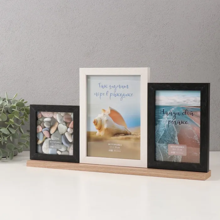 Фоторамка МДФ на 3 фото 10х10 10х15 13х18 см "Агата" черно-белая 5х40х21,5 см — Характеристики