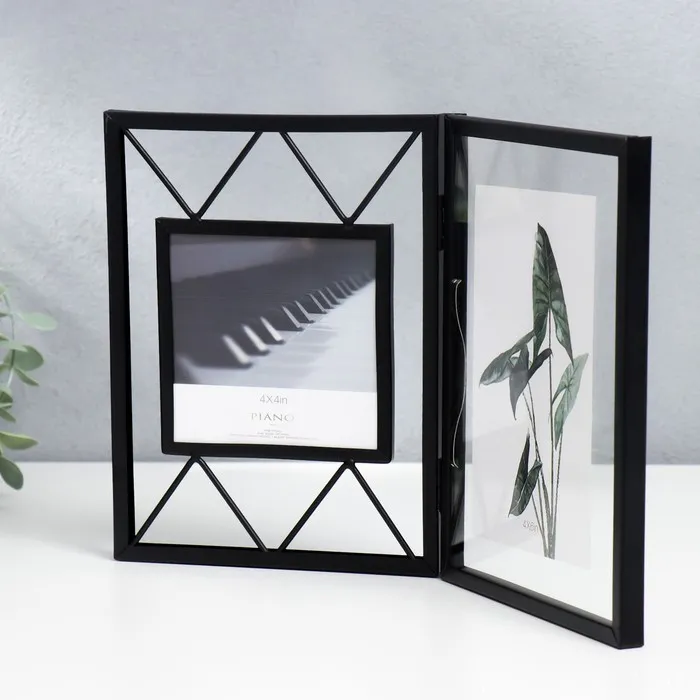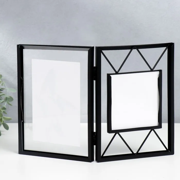 Фоторамка металл на 2 фото 10х10, 10х15 см "Лофт. Треугольники" чёрная 20х30,5 см — Характеристики