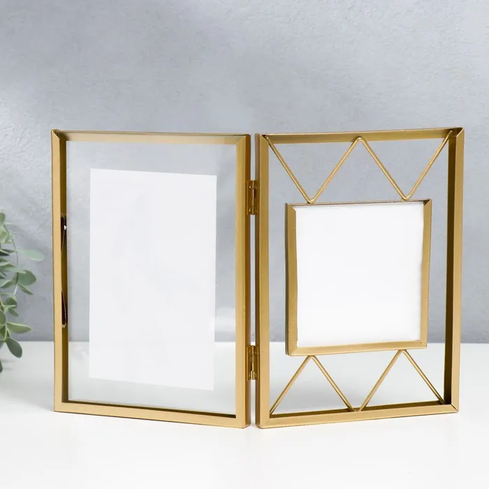 Фоторамка металл на 2 фото 10х10, 10х15 см "Лофт. Треугольники" золото 20х30,5 см — Характеристики