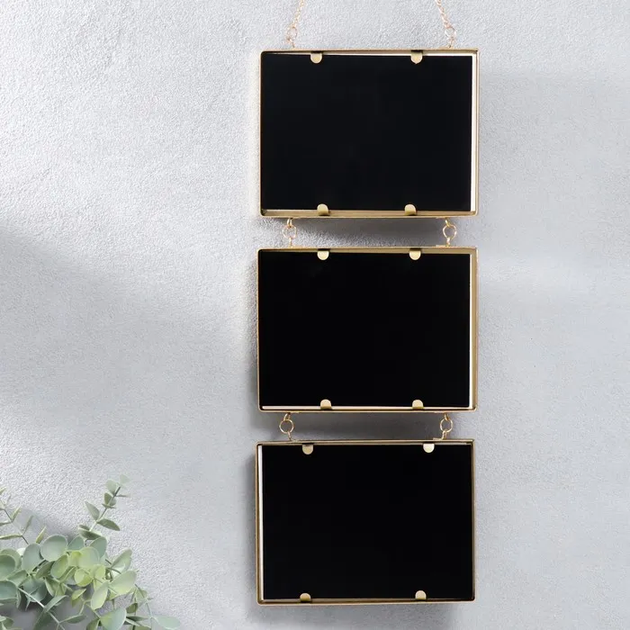 Фоторамка металл на 3 фото 10х15 см "Лофт. Строгие линии" золото, паспарту 44х18,5 см — Характеристики