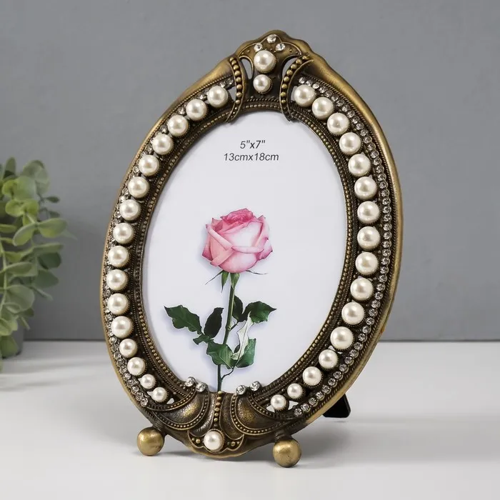 Фоторамка металл, стекло 13х18 см "Нега" латунь, стразы, жемчужины 1,7х17,3х25 см — Характеристики