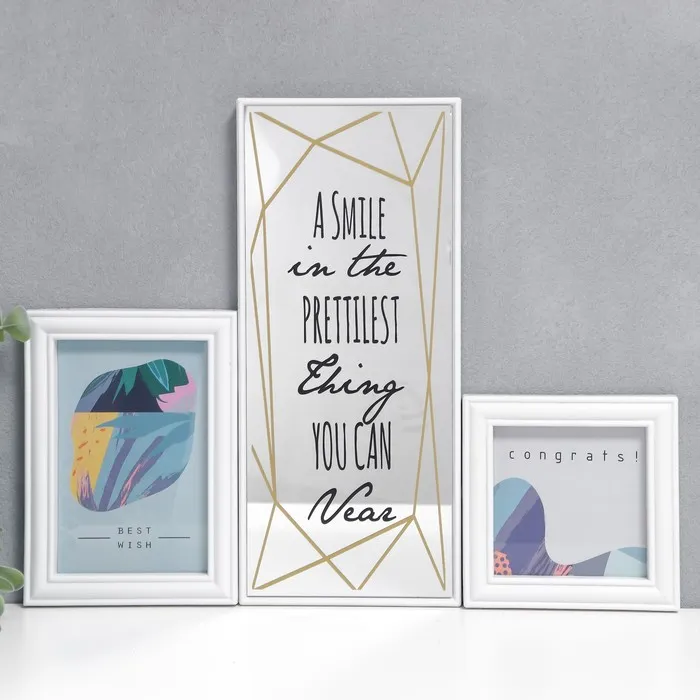 Фоторамка на 2 фото 10х10, 10х15 см+зеркало "Улыбка" белая набор 3 шт 31х27 см — Характеристики