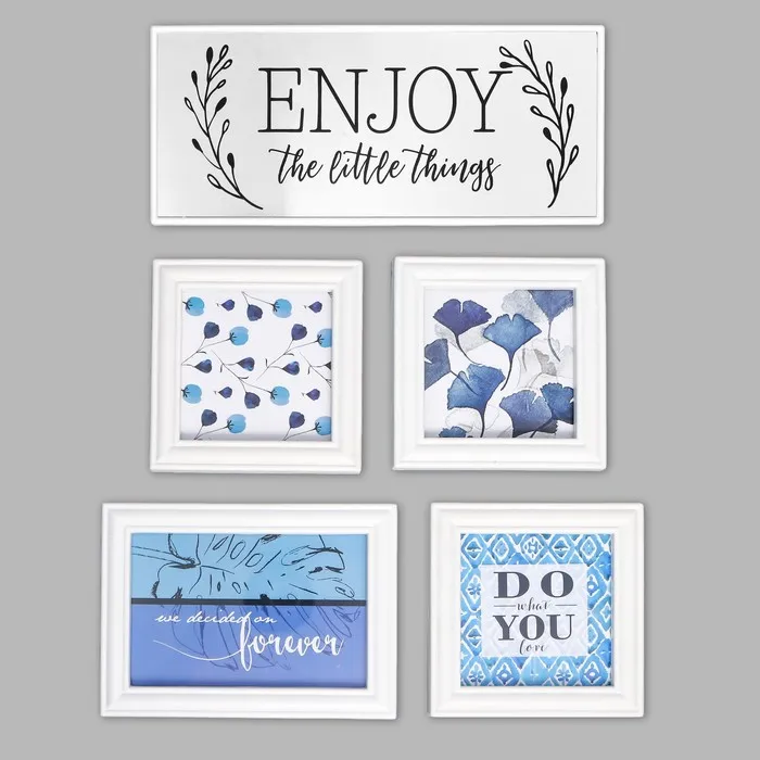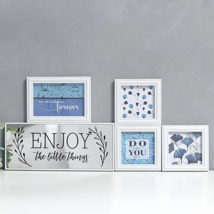 Фоторамка на 4 фото 10х10, 10х15 см+зеркало "Наслаждайся мелочами" белая н-р 5 шт 26х44 см — Характеристики