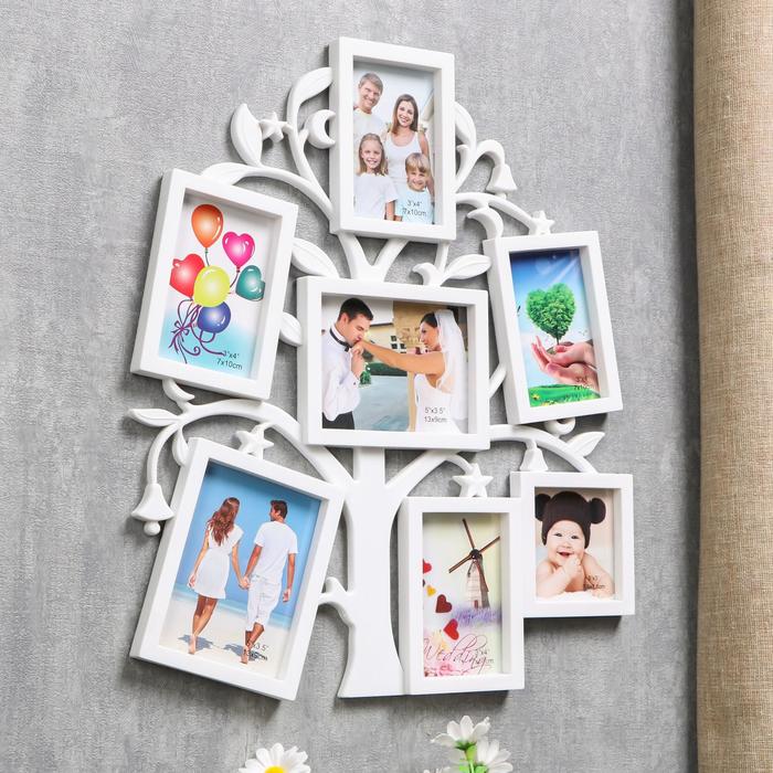 Фоторамка на 7 фото 7х7 см, 7х10 см, 13х9 см "Дерево желаний" белая 36х31 см — оригинальный подарок на День святого Валентина, годовщину, свадьбу или другое значимое для вас событие. Фоторамка, которая расскажет об искренних и теплых чувствах. И, возможно, она станет началом для создания вашего совместного генеалогического древа.