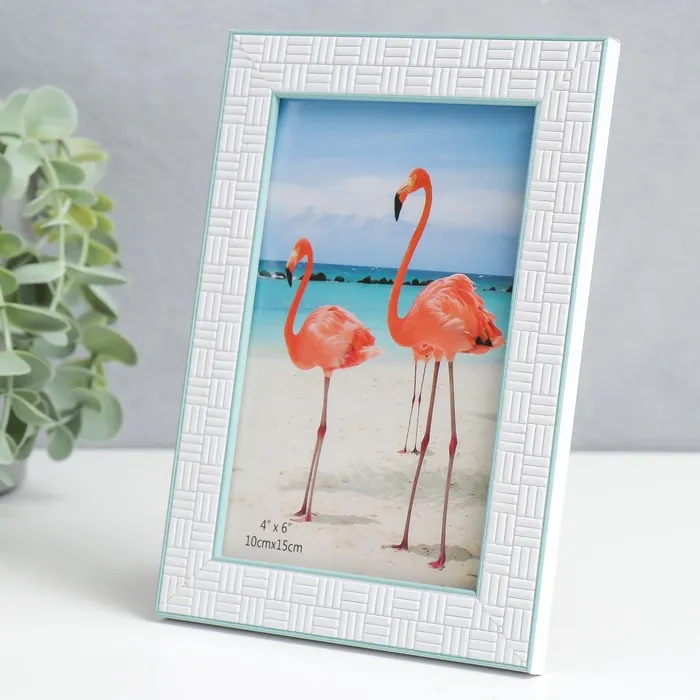 Фоторамка пластик 10х15 см "Белая брусчатка" бирюзовая двойная обводка 17,8х12,5 см