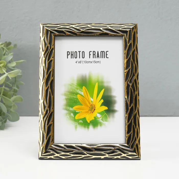 Фоторамка пластик 10х15 см "Корни" чёрная с золотом 19х14 см — Характеристики