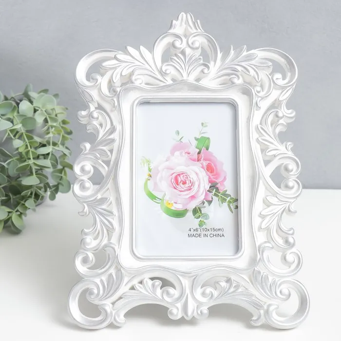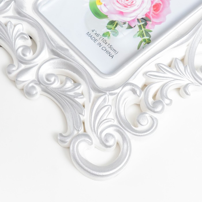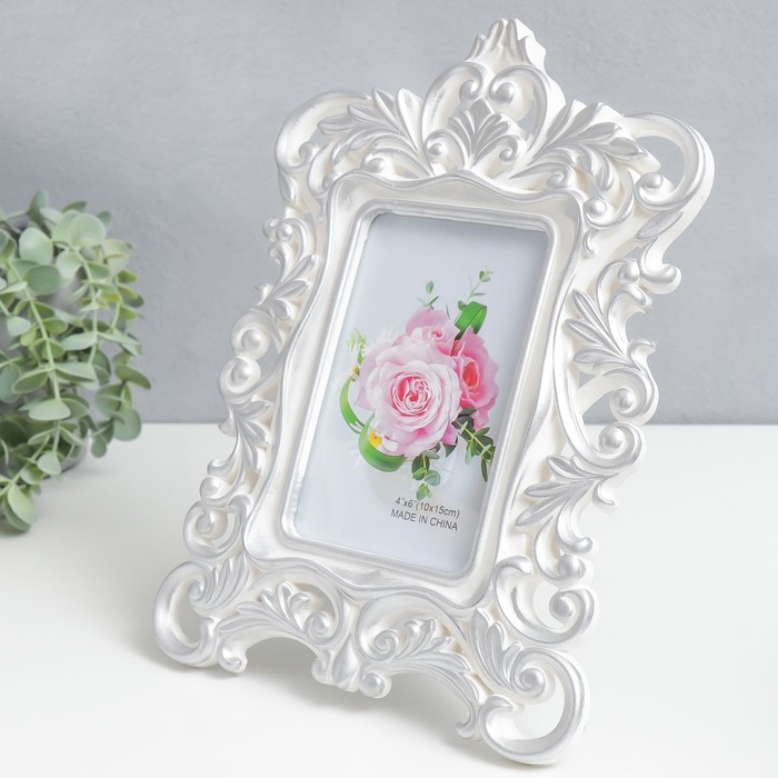 Фоторамка пластик 10х15 см "Королевские пышные листья" серебро 28х20,5 см — Характеристики