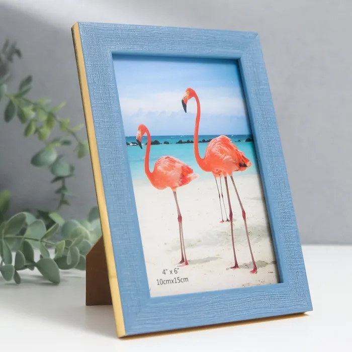 Фоторамка пластик 10х15 см "Лён ярко-голубой" золотая обводка 17,5х12,5 см — Характеристики
