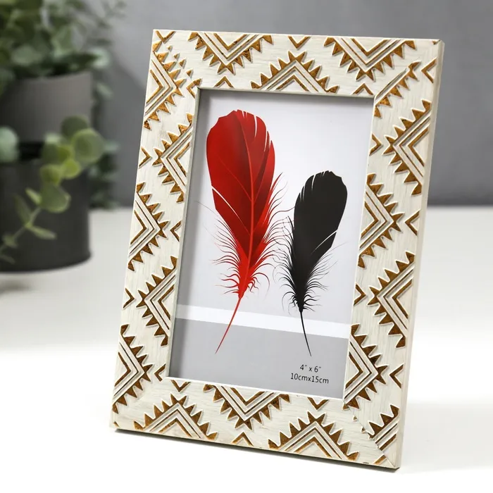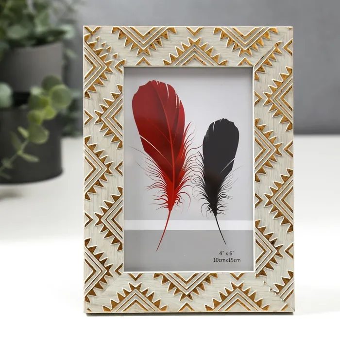 Фоторамка пластик 10х15 см "Золотые индейские узоры на серо-бежевом" 18,5х13,8 см — Характеристики