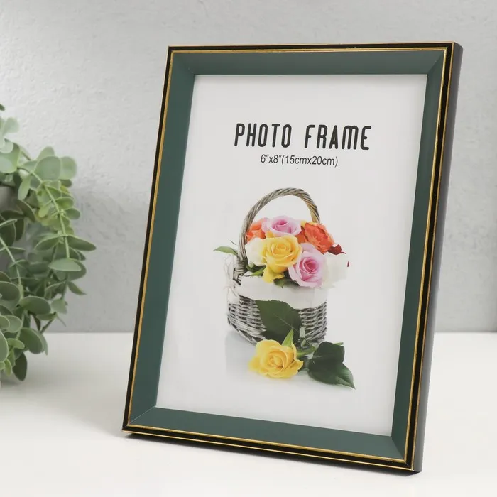 Фоторамка пластик 15х20 см "Зелёный с золотым обрамлением" 17х22 см — Характеристики