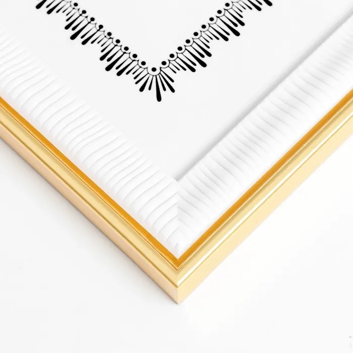 Фоторамка пластик формат А4 "Неровные полоски" белая с золотой обводкой 32,6х24 см