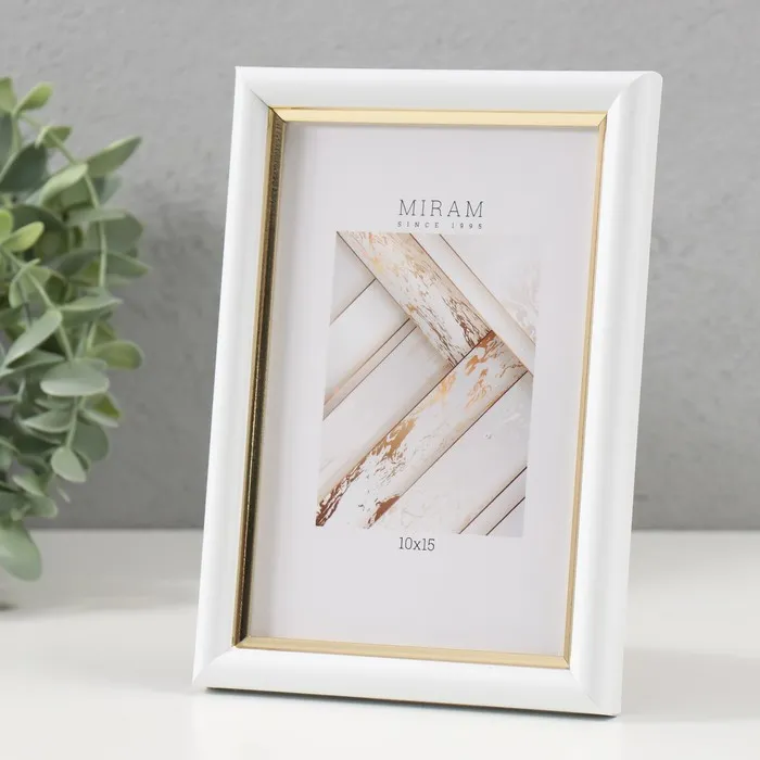 Фоторамка пластик "МИРАМ" 10х15 см, 636461 белый с золотом (пластиковый экран) — Характеристики